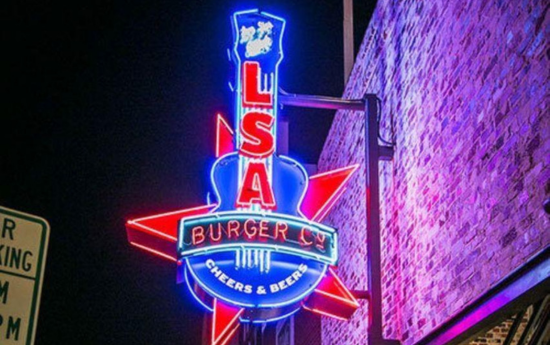 LSA Burger in Denton offers rooftop views, live music, and Texas-themed murals, serving up bold burgers like the Georgie Boyand favorites like brisket queso and garlic parmesan fries—making it a local favorite with consistently high reviews.
